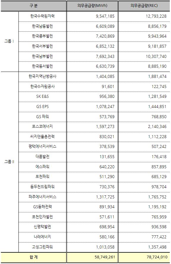 관련 글: RPS 규칙 개정으로 REC 기준 공급의무자별 의무공급량 증가
