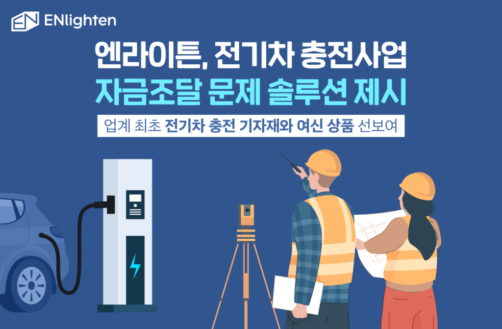 엔라이튼은 일전 충전왕 서비스 업데이트에 이어 업계 최초로 전기차 충전 기자재와 시공 여신 상품을 선보였습니다. 엔라이튼은 현재까지 총 2,790억 원 규모의 태양광 금융 구조화와 자금 조달 노하우를 갖고 있는데요, 이를 바탕으로 전기차 충전 사업에도 충전기 설치 확대를 위한 금융 상품을 마련했습니다.