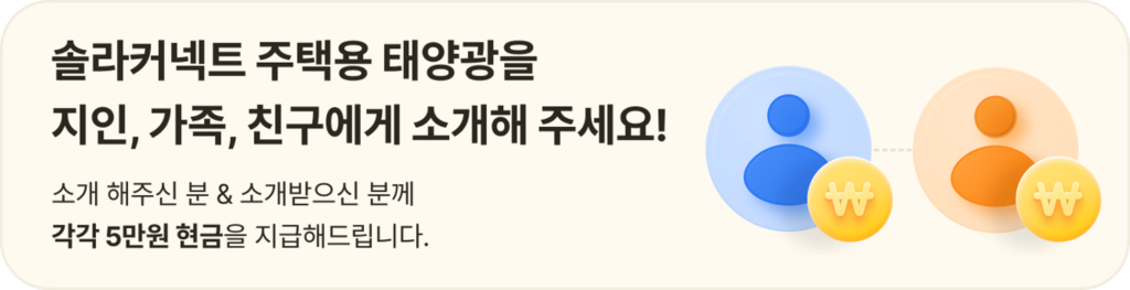 솔라커넥트에서는 2022년 주택용 태양광 사전신청을 받고 있는데요. 사전계약을 하시는 분들께 제공하는 10만 원 추가 할인과 지인 소개 이벤트를 놓치지 말고 후회 없이 주택용 태양광을 설치하시기 바랍니다.