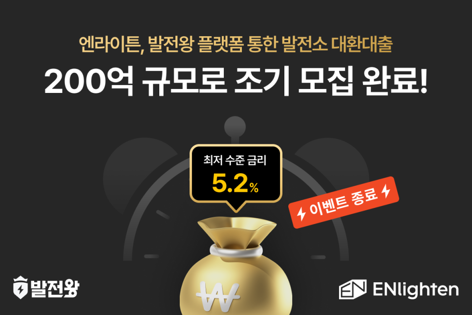 [관련 글] 엔라이튼, 발전왕 대환대출 프로모션 200억 규모의 발전소 조기 모집 완료!