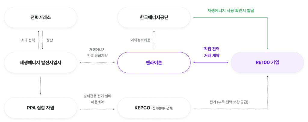 한편 RE100 이행 방안 중 재생에너지 확대에 실질적으로 기여할 수 있는 방식으로 ‘PPA’가 떠오르고 있는데요, PPA는 기업이 실제로 재생에너지 발전소와 매칭되어 전력을 공급받아야 하기 때문에 기업 입장에서는 계약을 위한 과정이 어려움으로 느껴질 수 있습니다.