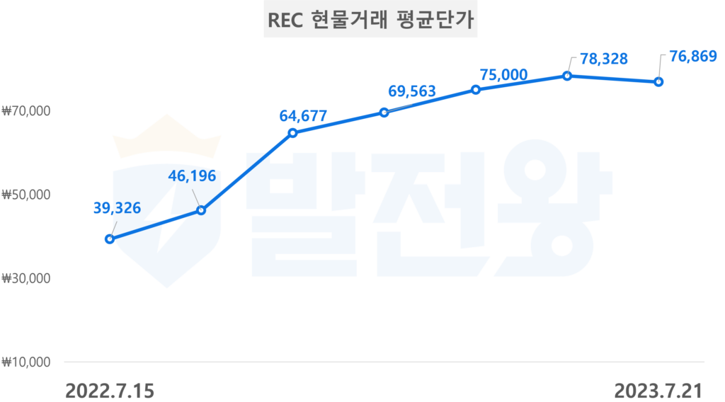 엔라이튼은 태양광 사업 시 가장 중요하다고 볼 수 있는 시장 동향을 누구보다 발 빠르게 전달하고 있는데요. 최근 7월 21일 RE100 인증서(REC) 플랫폼 거래 시장 현물거래 체결 현황에 따르면 평균단가가 76,869원을 기록했습니다.