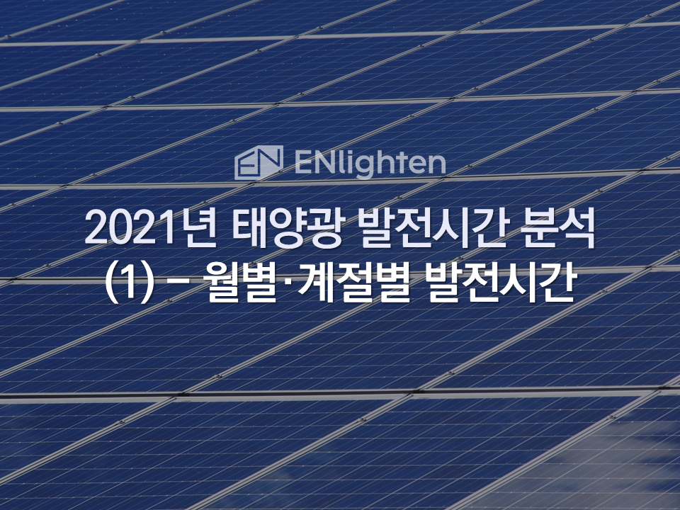 오늘은 엔라이튼의 전국 태양광 발전소 빅데이터를 기반으로 2021년 한 해동안의 월별 발전시간을 분석해보겠습니다. 국내 1만여 개소, 2GW(2,000MW)의 태양광 발전소가 엔라이튼 ‘발전왕’ 서비스를 통해 효율적으로 관리되고 있으며, 발전왕에 가입하시면 발전시간 현황을 실시간으로 확인하실 수 있습니다.