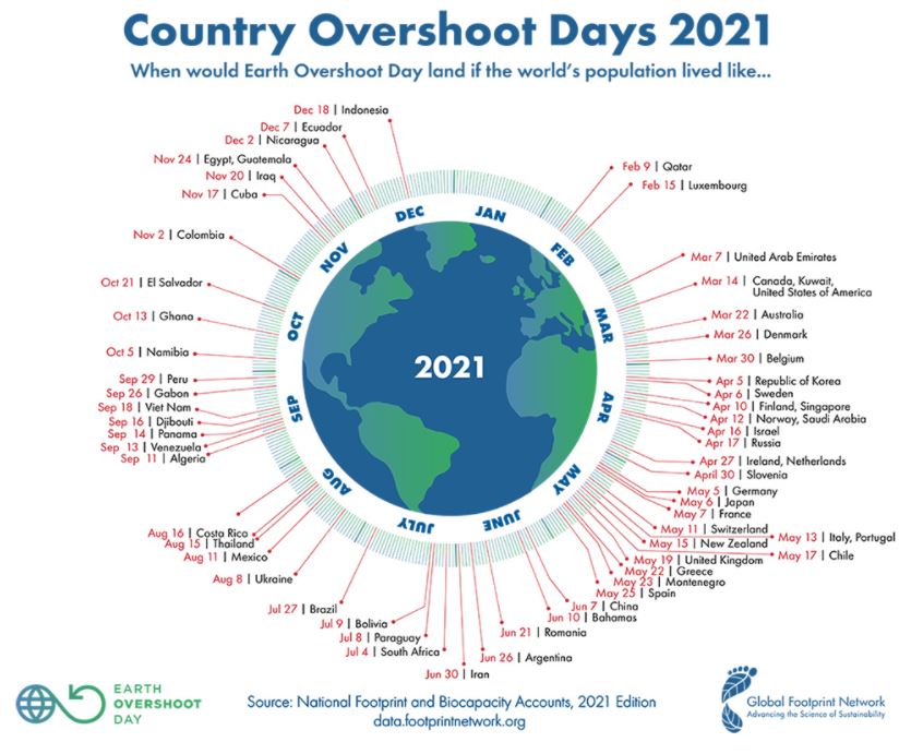 도입부에 말씀드렸듯이 2021년 생태용량 초과의 날은 7월 29일입니다. 즉, 인류는 약 한 달 전 지구가 재생할 수 있는 자원을 모두 소비했습니다.